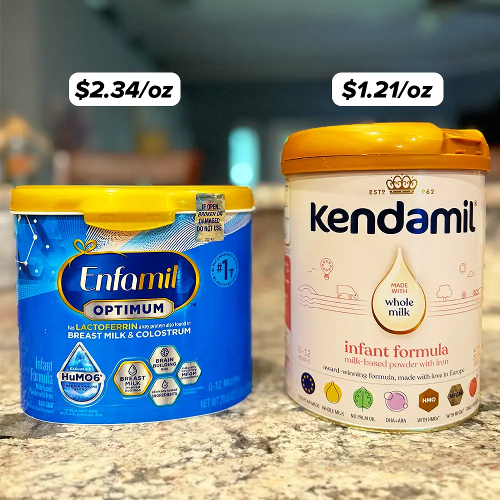 🥇 Kendamil Classic Infant Formula is the most affordable option, at about $1.21 per ounce.