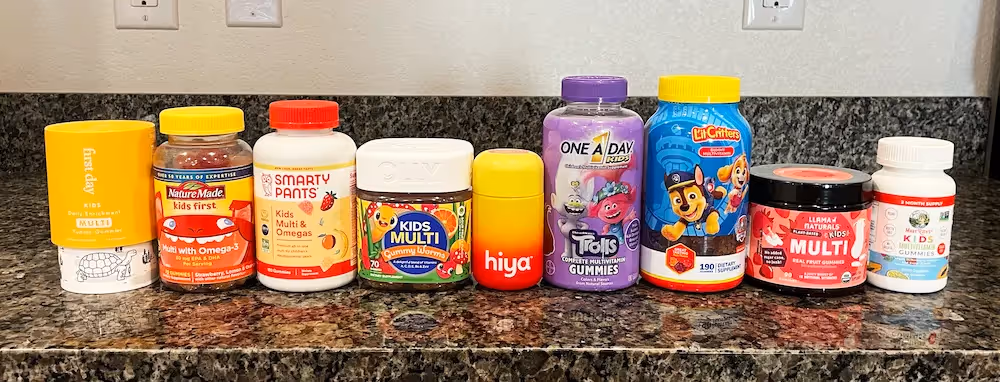 🥇 Hiya Kids Daily Multivitamin: contains 15+ essential vitamins and minerals, such as vitamin C for immunity, vitamin D for mood support, folate for cognitive development - all derived from natural fruit and veggie blends with 0g of sugar. It is also the only multivitamin we reviewed with calcium.