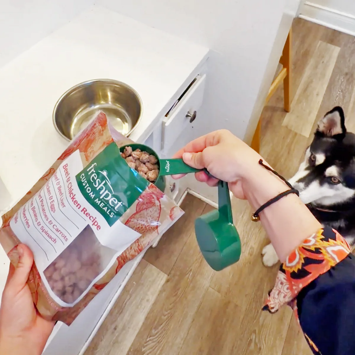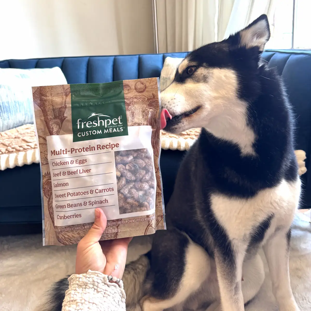 After testing the top four fresh dog food brands - Freshpet, The Farmer’s Dog, Ollie, and JustFoodForDogs - Freshpet is the clear winner. It has the strongest nutritional profile, the easiest, no-mess, serving format, and is Sombra’s favorite.
