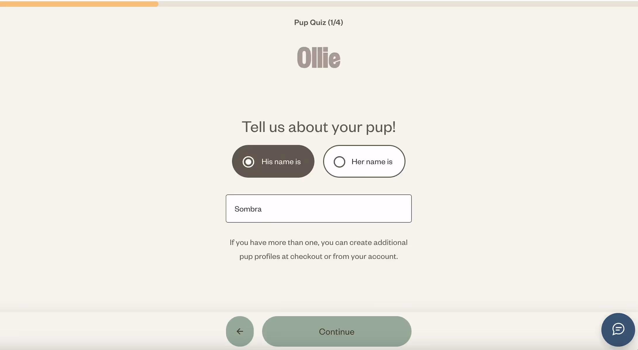 Freshpet tied with Ollie as the easiest purchasing process. With Freshpet, we could view Sombra’s profile, nutrition info, and cost breakdown on a single page, while Ollie’s survey was just four pages long with only questions relevant to his diet. The other brands required time consuming, multi-page surveys with some seemingly irrelevant questions (does it really matter if he’s “cute” or “silly”?)