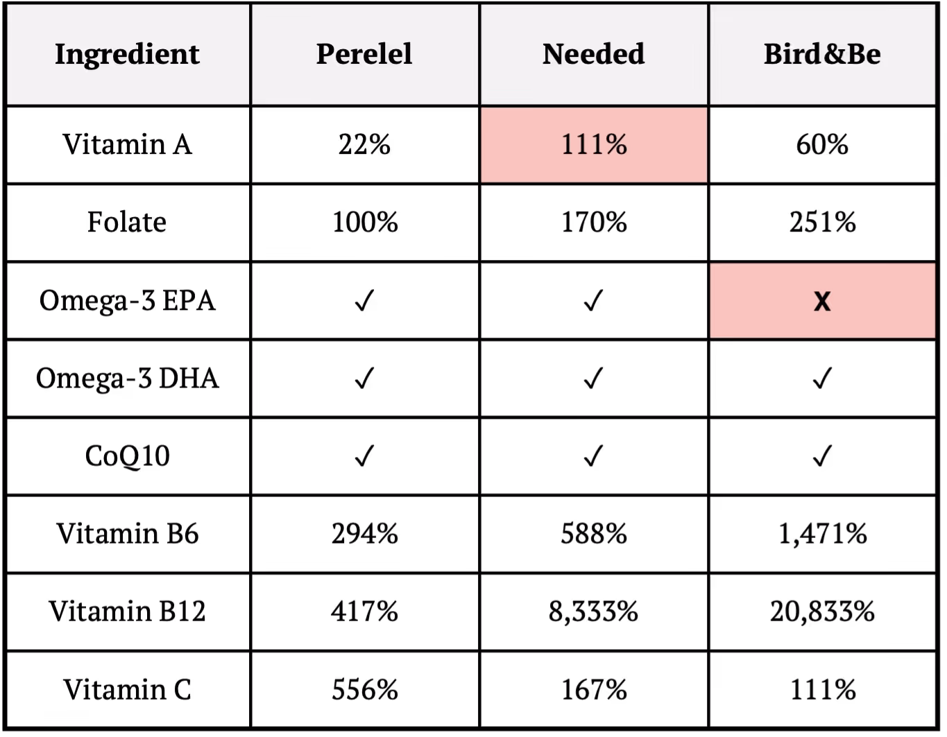 - Best: Perelel and Bird&Be both contain Vitamin A in effective & conservative dosages, below the recommended daily value (RDV).