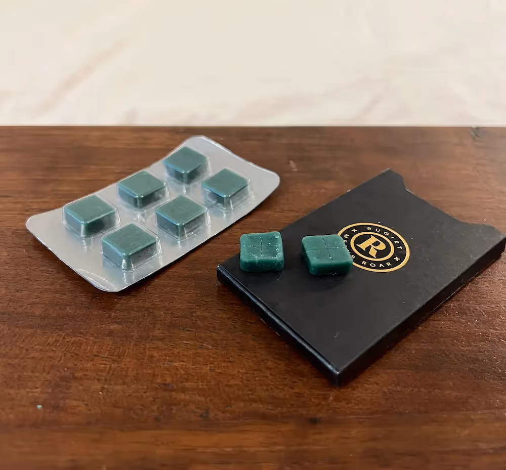 Both Rugiet and Ro Sparks are sublingual (under the tongue); Rugiet is mint-flavored and dissolves in 5 minutes. Ro Sparks is bitter and takes longer to dissolve.